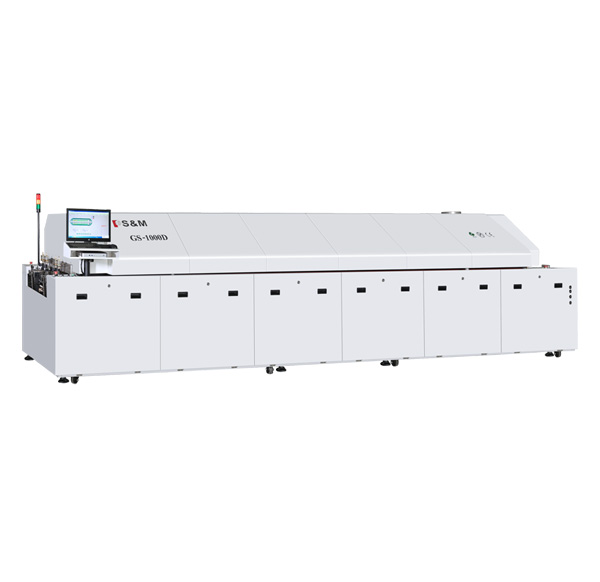 采用新的氣體管理系統(tǒng),可使?fàn)t內(nèi)熱氣體交換效率更高,以獲得更好的熱補(bǔ)償與熱效率,完全滿足各種無鉛焊接工藝要求;加長(zhǎng)型加熱溫區(qū),能滿足大產(chǎn)能的生產(chǎn)需求。符合多種規(guī)格過板(最大過板2 - 280mm),可高精度控制溫度及爐溫曲線重復(fù)。